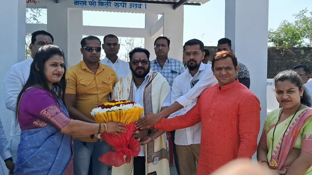 सदर उदघाटन सोहळ्यात स्मशानभूमीत लिहिले सुविचार मृत्यू कधीही कसाही होऊ शकतो म्हणून स्मशानभूमीला दरवाजे नसतात…हे सुविचार