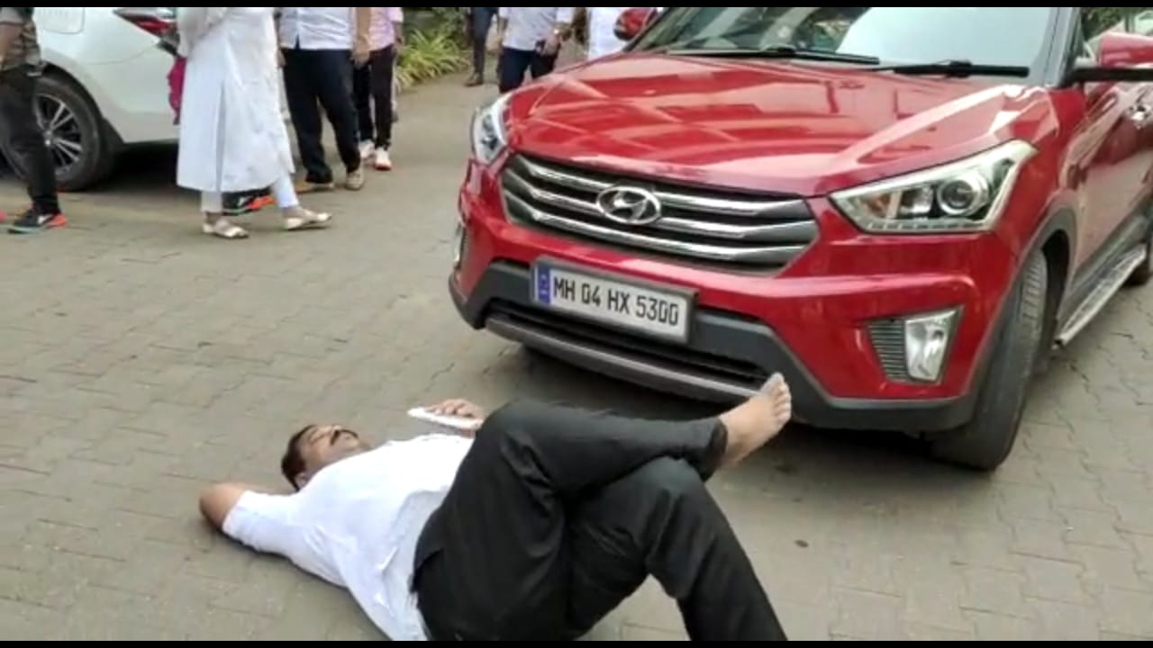 ठाणे महानगरपालिका प्रशासक यांनी यांच्यावर कारवाई करावी अशी मागणी करत गाडी समोर आंदोलन केले बिरो रिपोट अश्विनी भालेराव ठाणे