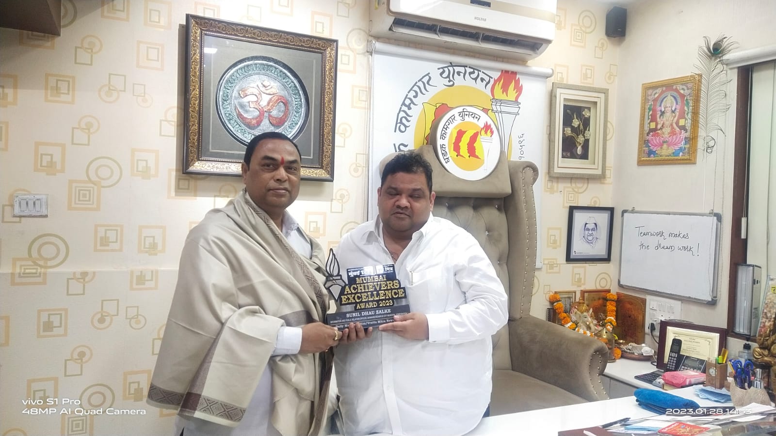 दै. मुंबई मित्र दै. वृत्त मित्र व वास्ट मिडिया, अभिजीत राणे युथ फाउंडेशनच्यावतीने आयोजित करण्यात आलेल्या राज्यस्तरीय पुरस्कार सोहळ्यामध्ये भिवंडीचे सुनील झळके यांना आपल्या प्रशासकीय, सामाजिक व पत्रकारितेतील क्षेत्रात उत्कृष्ट कार्य केल्याबद्दल मुंबई अचिवर्स एक्सलन्स अवॉर्ड 2023 प्रदान करण्यात आलेला आहे. हा पुरस्कार वितरण सोहळा मुंबईचा नरिमन पॉईंट येथील यशवंतराव चव्हाण सभागृहात नुकताच पार पडला. हा अवॉर्ड सुनील झळके यांना अभिजीत युथ फाऊंडेशनचे संस्थापक विख्यात कामगार नेते अभिजित राणे यांच्या हस्ते व प्रमुख पाहुण्यांच्या उपस्थितीत समारंभ पूर्वक प्रदान करण्यात आला.