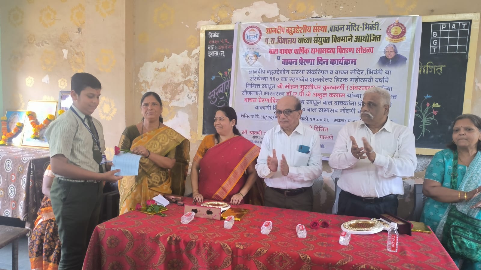 भिवंडी दि.१६ ( गांवकरी TODAY NEWS ) भारतरत्न डॉ.ए.पी.जे अब्दुल कलाम यांच्या जयंती निमित्ताने वाचन प्रेरणादिन साजरा केला जातो. त्या निमित्ताने प.रा. विद्यालयात वाचन मंदिर वार्षिक सभासदत्व वितरण सोहळा आयोजित करण्यात आला होता. विद्यार्थ्यांमध्ये वाचनाची आवड निर्माण व्हावी,या निमित्ताने १६० विद्यार्थ्यांचे बाल सभासदत्व म्हणून नोंद करण्यात आले. या उपक्रमात विद्यार्थ्यांनी देखील हिरहिरीने सहभाग घेतला.भिवंडीतील वाचन मंदिर संस्थेच्या १६० व्या वर्षात संस्थेचे सभासद वाढविणे, विशेष करून विद्यार्थ्यांच्या वाचनाकडे विशेष लक्ष देणे, त्यांना वाचनालयात आणणे अपेक्षित आहे, याकामी संस्था वेगवेगळे उपक्रम राबवित असते. याचाच एक भाग म्हणून अंबरनाथ येथील ज्ञानदीप बहुउद्देशिय संस्थेने वाचन मंदिराचे बाल सभासद वाढविणे कामी पुढाकार घेतला. यावेळी प. रा.विद्यालयाच्या १६० विद्यार्थ्यांची वाचन मंदिराचे बाल सभासदत्व म्हणून नोंद करण्यात आली. या साठी अंबरनाथ येथील दानशूर व्यक्ती मोहन मुरलीधर कुलकर्णी यांच्या वतीने या सर्व १६० विद्यार्थ्यांचे एक वर्षाचे शुल्क भरण्यात आले. भारतरत्न डॉ. ए.पी.जे अब्दुल कलाम यांच्या जयंती निमित्ताने वाचक प्रेरणादिन साजरा केला जातो. त्या निमित्ताने प.रा. विद्यालयात वाचन मंदिर वार्षिक सभासदत्व वितरण सोहळा आयोजित करण्यात आला होता. यावेळी व्यासपीठावर वाचन मंदिर संस्थेचे अध्यक्ष सुधीर सिंगासणे, ज्ञानदीप बहुउद्देशिय संस्थेच्या संस्थापक अध्यक्षा श्रावणी फाटक, मुख्य देणगीदार मोहन कुलकर्णी, प.रा.विद्यालयाच्या मुख्याध्यापिका लक्ष्मी नलावडे, उपमुख्याध्यापिका श्रीमती पौर्णिमा माळी, जनरल एज्युकेशन इन्स्टिट्यूट दादर चे संचालक मंडळ सदस्य पंकज माधव भोईर, वाचन मंदिर संस्थेचे कार्यवाह किशोर नागवेकर, खजिनदार उज्ज्वल कुंभार, सहकार्यवाह मिलिंद पळसुले, ज्ञानेश्वर गोसावी, ज्येष्ठ सदस्य गणेश दांडेकर, इत्यादी उपस्थित होते. यावेळी अध्यक्षीय मनोगत व्यक्त करताना सुधीर सिंगासणे यांनी नमूद केले की, विद्यार्थी दशेतूनच वाचनाची सवय लागणे आवश्यक आहे.पुस्तकासारखा दुसरा कोणताही मित्र नाही. वाचनातून माणूस प्रगल्भ होतो.अनेक मोठ्या व्यक्ती यांनी वाचनाचे महत्त्व नमूद केलेले आहे.त्यामुळे वाचनाशिवाय तरणोपाय नाही, आपल्याला कोणत्याही क्षेत्रात चांगले यश मिळवायचे असेल तर त्याकरता अवांतर वाचन सगळ्यात महत्त्वाचे आहे. या करीता वाचन मंदिराच्या वतीने सर्व विद्यार्थी वर्गांकरिता मुक्त व्यासपीठ उपलब्ध करून देण्यात येणार आहे.त्याचप्रमाणे रविवार १५ ऑक्टोबर पासून पुढील वर्षी १५ ऑक्टोबर २०२४ रोजी पर्यंत जो कोणी चांगल्या प्रकारे वाचनात सातत्य ठेवेल, अशा चांगल्या वा